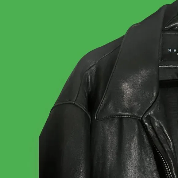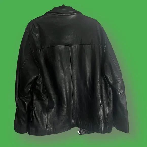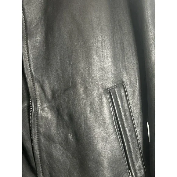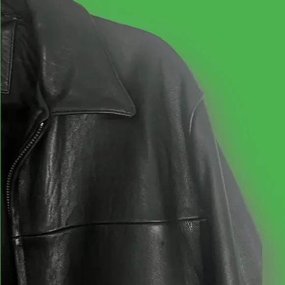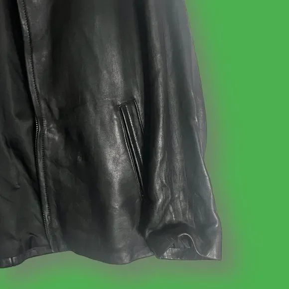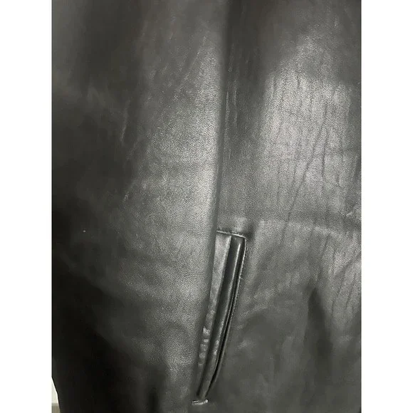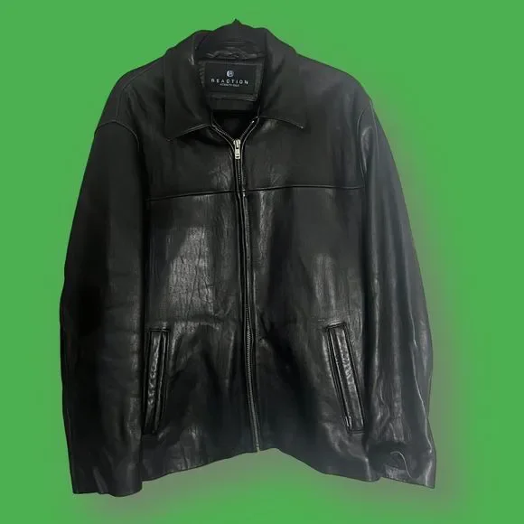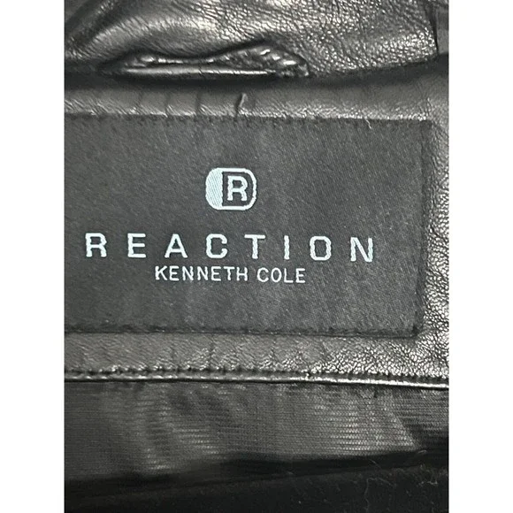 Look stylish and cool with this vintage Kenneth Cole Reaction men's jacket. Made from genuine black leather, this jacket is perfect for any occasion. It comes in size medium and has a classic bomber jacket style that never goes out of fashion. Its solid pattern is perfect for those who want a retro look, and its fabric type is of high quality. This jacket is perfect for men who want to look fashionable without compromising comfort. Get this leather jacket now and make a fashion statement wherever you go.