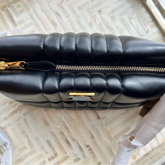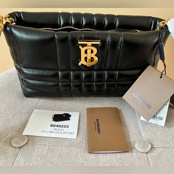 A soft structured, quilted bag crafted from Italian-tanned leather. Polished chain shoulder strap and the TB monogram.Measurements:27.5x11x12cm / 10.8x4.3x4.7inShoulder strap drop: 50cm/ 19.7inOuter: 100% Lambskin Trim: 100% Lambskin Lining: 109% polyamide Adjustable chain and Lambskin shoulder strapOne interior slip pocket Zip closure Made in Italy Brand new, original tag and dust bag included