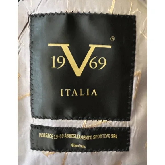 This stylish Versace Italia 19v69 sport coat is a must-have for any fashion-savvy man. With its sleek gray color and sports theme, it's perfect for any casual occasion. Made with high-quality materials, this coat is built to last.The 40R size make it a great fit for any regular-sized man. Whether you're looking to upgrade your wardrobe or simply add a touch of luxury to your outfit, this sport coat is the perfect choiceMeasurementsBack (collar seam to tail) 28inchesArm pit to armpit 18 inchesShoulder seam to cuff 22 inches