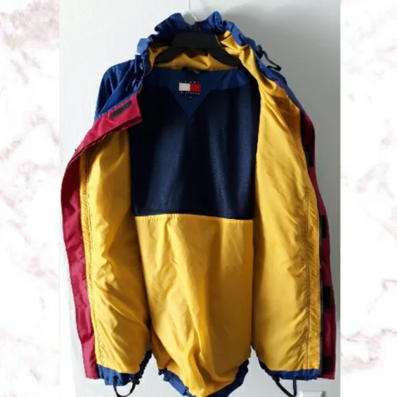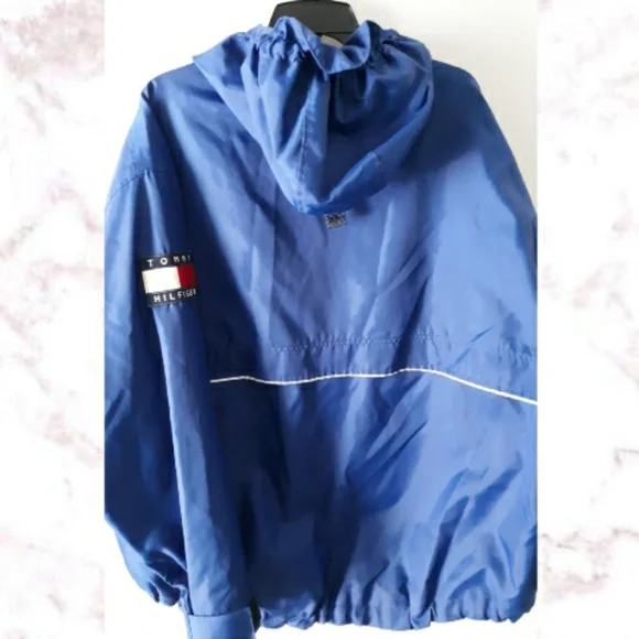 Men's excellent used condition, vintage Y2K blue Tommy Hilfiger hooded nylon jacket. Drawstring hood.Zip & velcro closure. 4 front pockets.Drawstring waist. Adjustable velcro cuffs.Logo patch on left arm.Size XLMeasurements Pit to pit 27”Length 31”Sleeve 25”Thanks for looking!I offer great bundle discounts, check out my closet!HUGE Selection!🛍