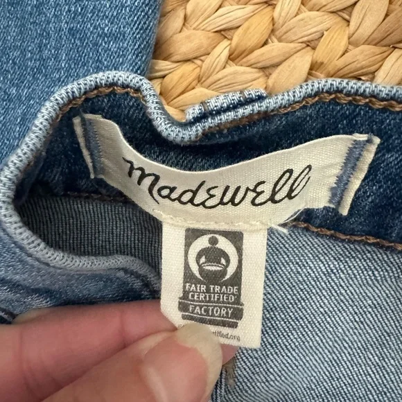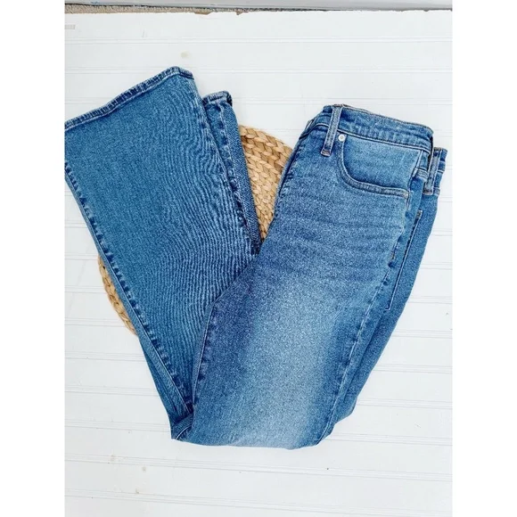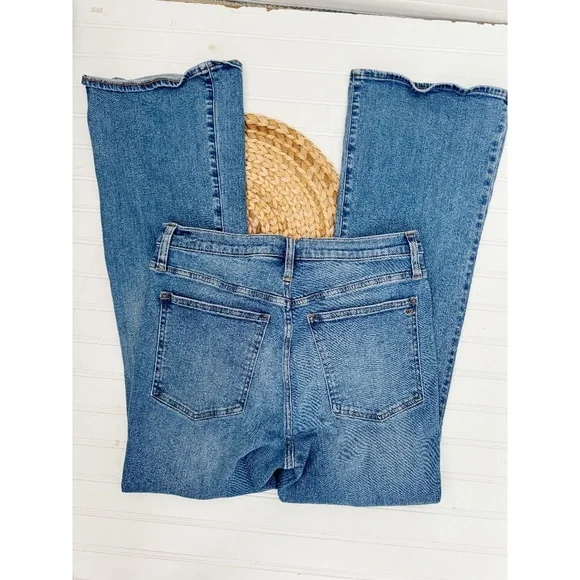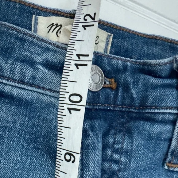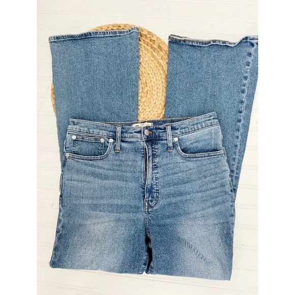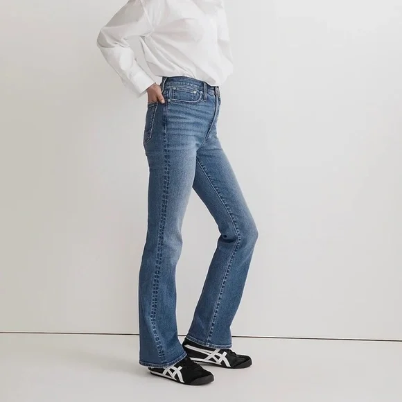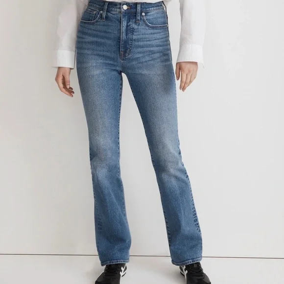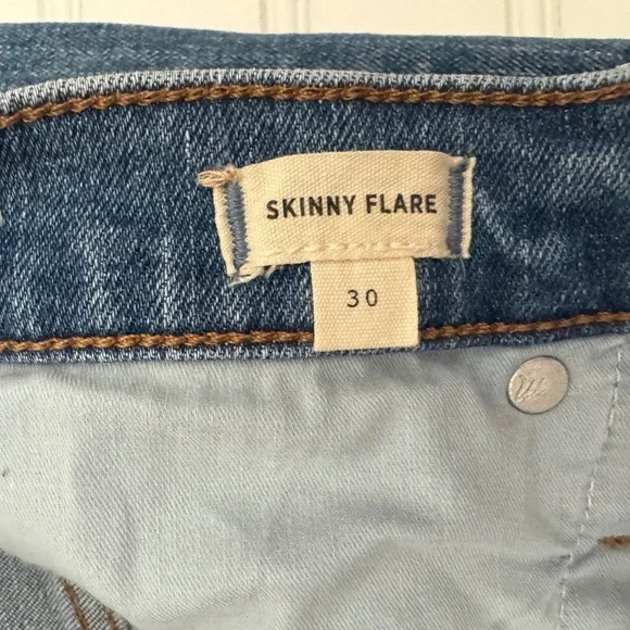 Madewell Skinny Flare Jeans in Fairson Medium WashSize The cut: complete with the holds-you-in sorcery of our Magic Pockets™ in front, these high-rise jeans are skinny to the knee before flaring at the leg.The fabric: vintage-y stretch denim that hugs the body and bounces back like a pro (aka no 3pm bagginess).Rich medium light indigo wash with authentic fading and distressing.98% cotton (20% of which is recycled/2% elastane.approx. measurements Waist 16" 11" high rise, 20" leg opening, 30.5" inseam.