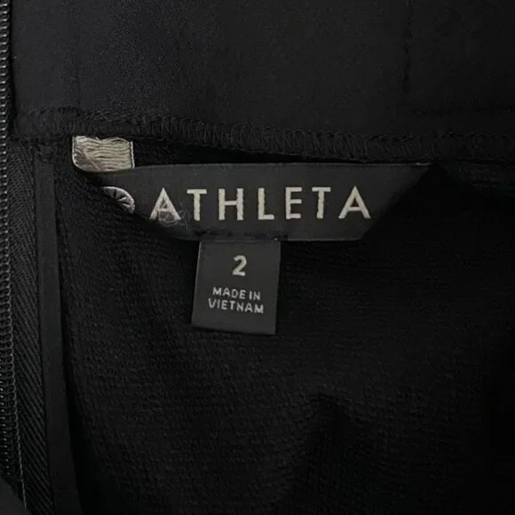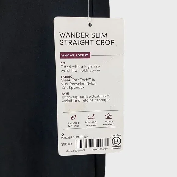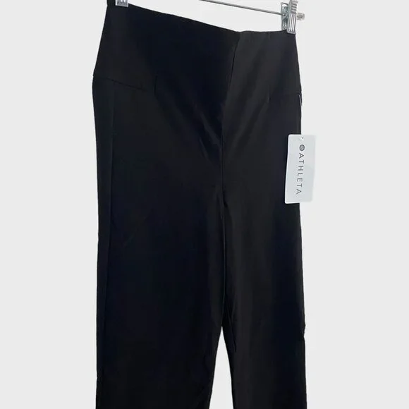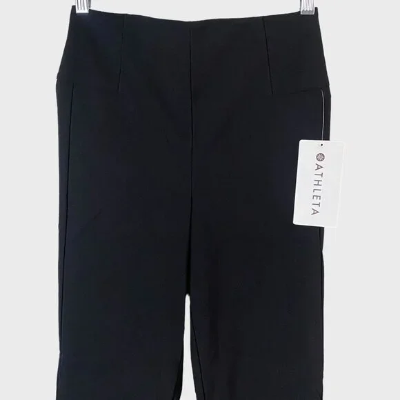 Athleta Wander Slim Straight Crop Pants Black High-Rise Stretch NewMSRP $98.00Women's Size 2Back Zipper ClosureWater Repellant & Abrasion Resistant90% Recycled Nylon 10% Spandex BlendNew With Tags. No Rips, Holes, Or Stains.Measurements Laying Flat In Inches:Waist 13''Front Rise 11.5''Inseam 27''Leg Opening 7''Please Check Measurements To Ensure Proper FitSold As Pictured